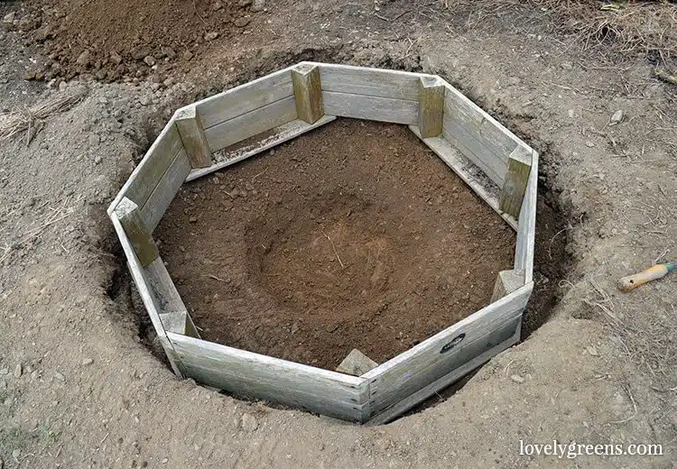 Le trou pour l’étang comprend un centre plus profond pour les grenouilles et les têtards peuvent se cacher dans